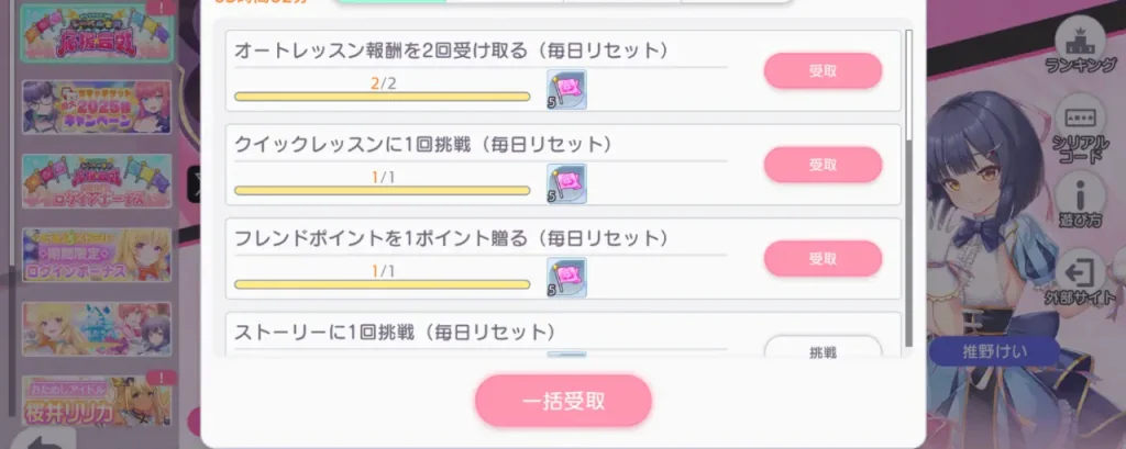 ゲーム内でやることは結構単純で、イベントのデイリーミッションを達成するだけです。