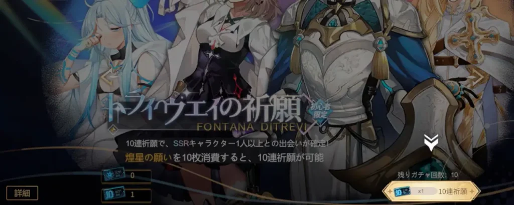 特別欲しいキャラなどがいなければ、「ベルトラン+他のSSRキャラ」の組み合わせを引けるまで粘ってみるといいでしょう。