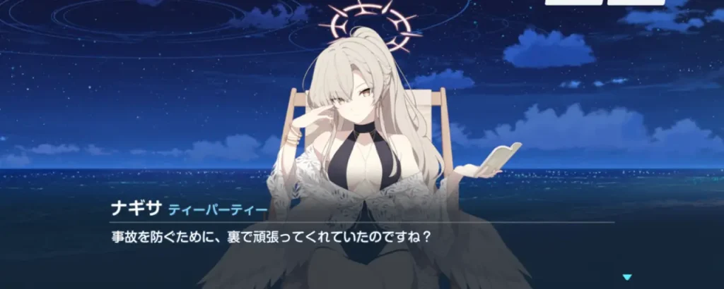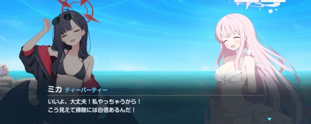 ミカはトラブルを起こしてナギサに怒られることを恐れていたが、ナギサはミカがバカンスのために尽力してくれたことを心から信じていた。